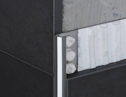 Perfil redondeado de Acero Inoxidable que se emplea como cantonera para proteger y decorar esquinas de paredes revestidas con baldosas cerámicas.