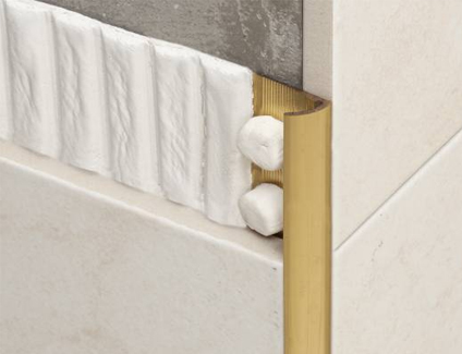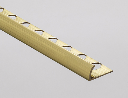 Perfil redondeado de Laton que se emplea como cantonera para proteger y decorar esquinas de paredes revestidas con baldosas cerámicas.