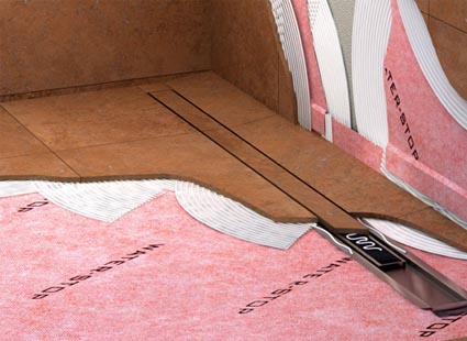 El sistema Evolux es una solución para la realizar la protección impermeable de zonas de suelo con evacuación de agua como los platos de ducha de obra. Está compuesto por una lámina WATER-STOP unida y sellada a un manguito especial para su conexión al sumidero.
