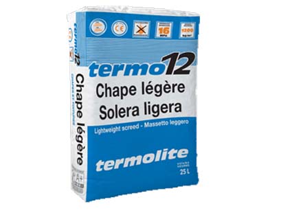 Solera de colocación / Recrecido de forjado / …realizado con mortero ligero semiseco premezclado en saco TERMO 12, con base de Arcilla Expandida especial hidrófoba (absorción de agua después de 30 minutos menor a 1% según la norma UNE EN 13055-1) conglomerantes específicos y aditivos.