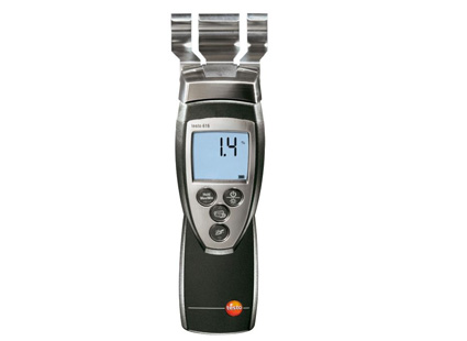 Con el medidor de humedad determinará el contenido de humedad en materiales de construcción y maderas de forma rápida y no destructiva y supervisará el proceso de secado. Para la medición, seleccionar simplemente la curva característica correspondiente y colocar las láminas de medición en el material correspondiente. El dispositivo le mostrará la humedad del material inmediatamente en la pantalla con el porcentaje en peso comparado con la masa seca. Con pulsar un botón retendrá el resultado de la humedad de la madera o de la humedad del material de construcción.