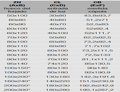 Para adquirir dos cupula adicionales, poner en Trivalva el mismo tamaño que el hueco de forjado de la claraboya elegida(color tranparente)