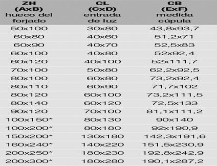 Para adquirir dos cupula adicionales, poner en Trivalva el mismo tamaño que el hueco de forjado de la claraboya elegida(color tranparente)