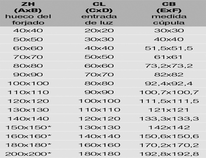 | Hueco Forjado | Entrada Luz | Medida Cupula |