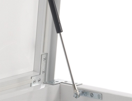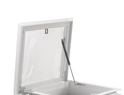 Según sea el tamaño de la claraboya su apertura variará de 70° hasta 85° e irá provista de uno o dos amortiguadores telescópicos