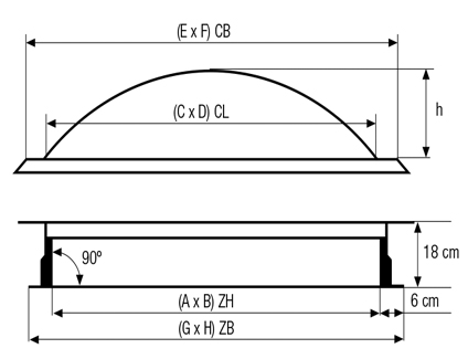 • Cupula de metacrilato: Fabricada en metacrilato (polimetilmetacrilato de metilo PMMA), no amarillean y mantienen su transparencia durante años. Disponible en color blanco hielo y transparente.Existe posibilidad y es recomendable añadir una cupula adicional (Bivalva) o dos cupulas adicionales (trivalva) para reducir el riesgo de condensaciones. Por defecto La cupula exterior es color blanco hielo y las interiores en caso de ser necesarias, son transparentes. Posibilidad de suministrar cupulas de control solar (Heatstop), alto impacto y policarbonato celular (Consultar disponibilidad y precios)
