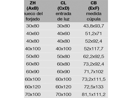 Para adquirir dos cupula adicionales, poner en Trivalva el mismo tamaño que el hueco de forjado de la claraboya elegida(color tranparente)